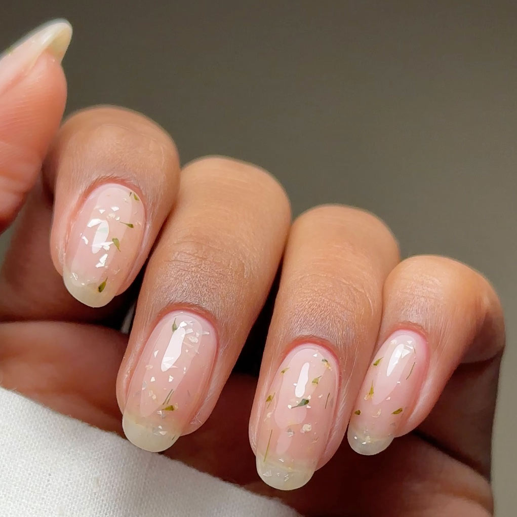 Verwenden Sie den TWENTY Pinsel „R“ oder „S“, um eine kleine Menge auf den Nagel aufzutragen, die Blütenblätter und Splitter sanft in die gewünschte Position zu bringen und aushärten zu lassen. Tragen Sie zwei Schichten auf, um eine vollere Deckkraft zu erzielen. Vervollständigen Sie Ihren Look mit einem TWENTY Top Coat.