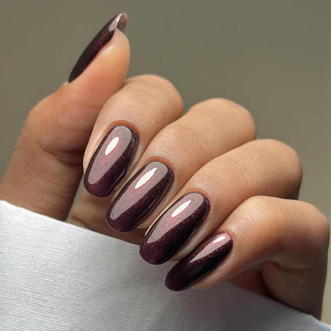 Step into timeless elegance with Privé, a luxurious dark burgundy red infused with fine burgundy shimmer glitter. This deep, sultry shade is the ultimate statement of sophistication—rich, moody, and perfectly balanced with a subtle sparkle that catches the light just enough to turn heads.